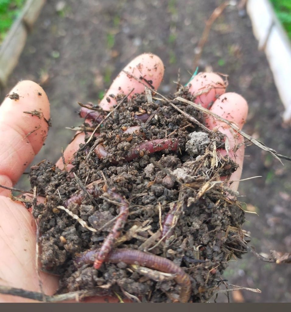 Gönüllülerin bahçesinden toprağın canlılığının göstergesi olan solucanlar.